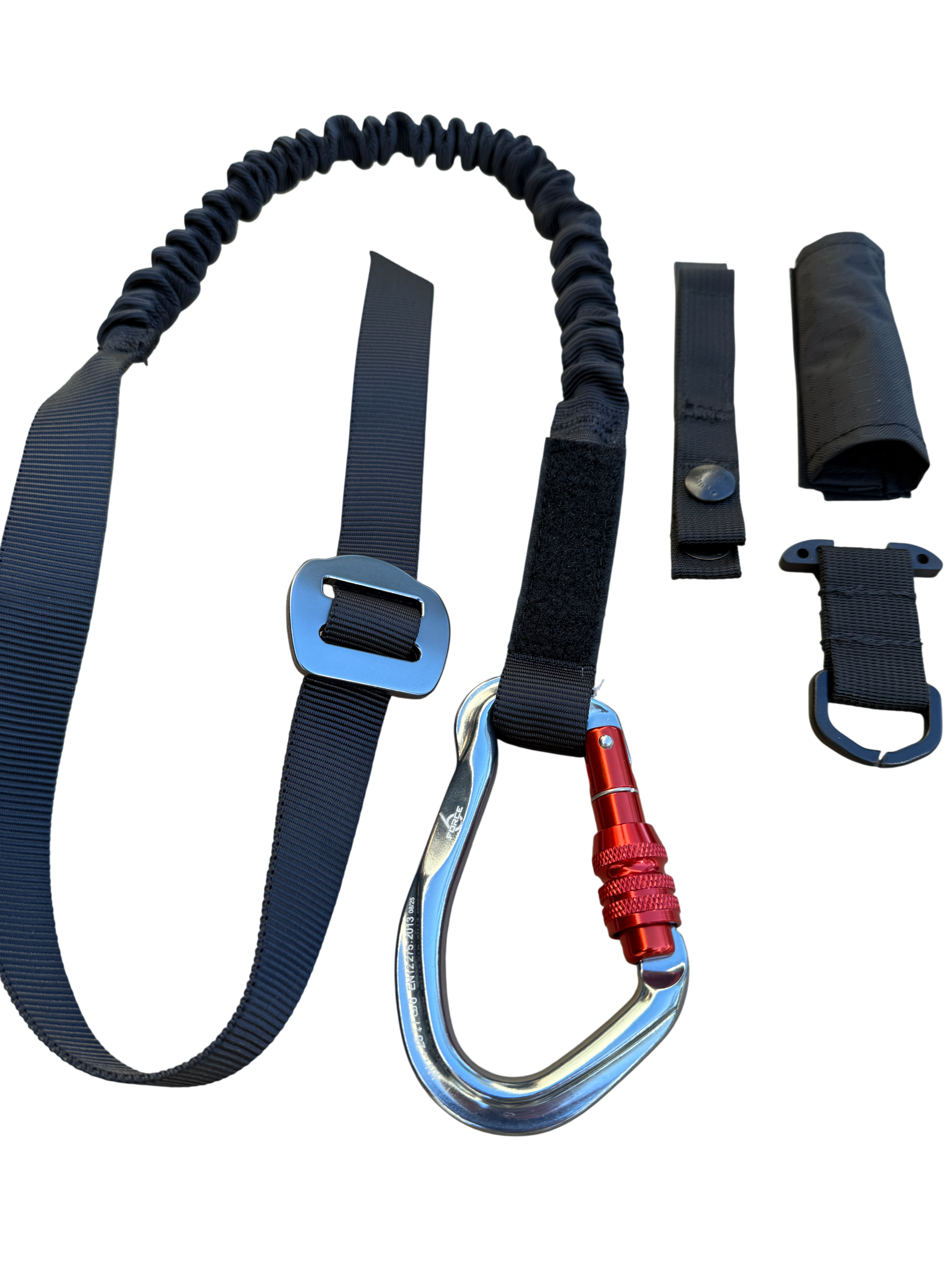 The Bungee Extrication Leash delivers dynamic length adjustment for swiftwater rescue operations. Its elasticated bungee design absorbs shock during extraction, reducing strain on both rescuer and victim while maintaining secure control in turbulent conditions. The adjustable length accommodates positioning over the shoulder or under the axillary, making it an essential tool for professional swift water teams.